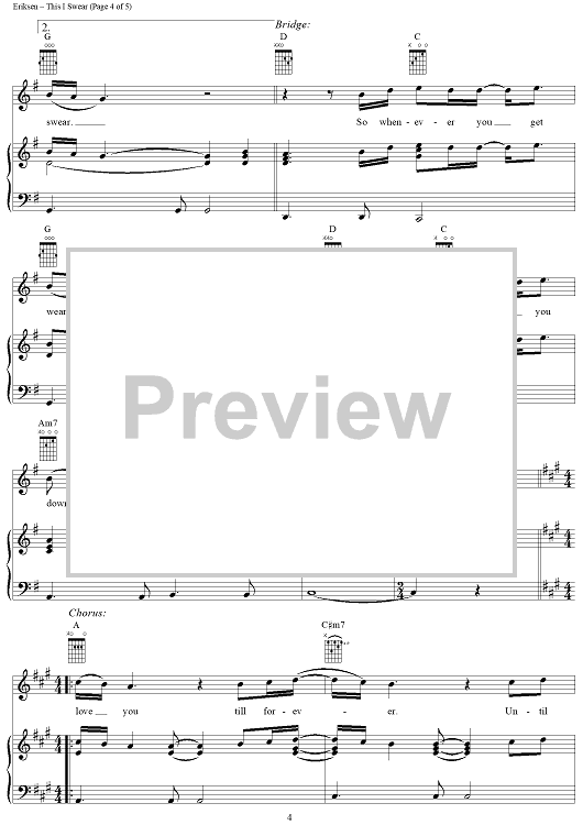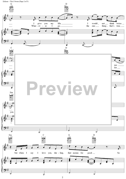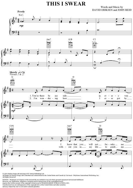 Digital Sheet Music for This I Swear by John Reid, Nick Lachey, David Eriksen scored for Piano/Vocal/Chords; id:305365