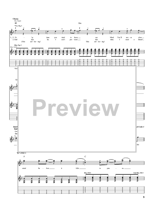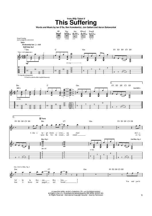 Digital Sheet Music for This Suffering by Billy Talent, Ian D'Sa, Jon Gallant, Ben Kowalewicz, Aaron Solowoniuk scored for Guitar Tab; id:396569