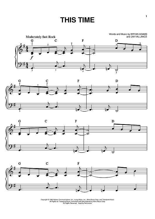Digital Sheet Music for This Time by Bryan Adams, Jim Vallance scored for Easy Piano; id:371924