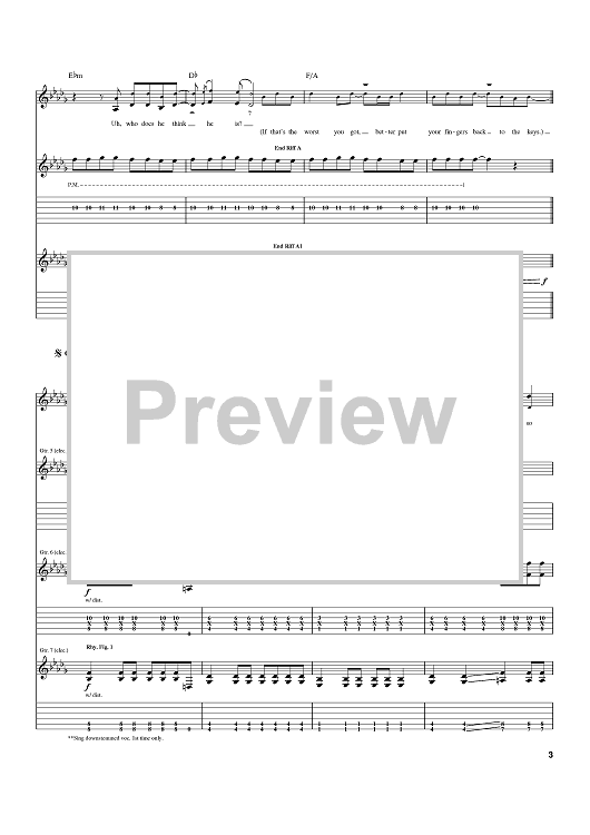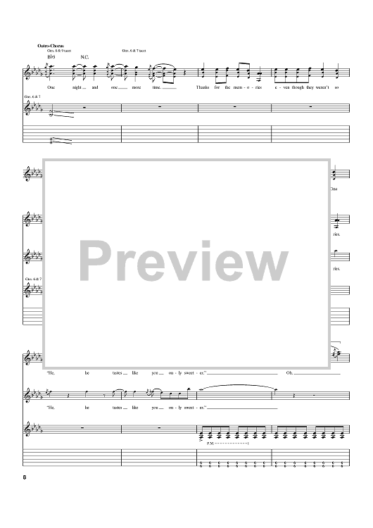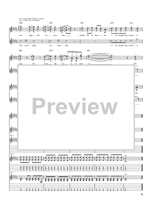 Digital Sheet Music for Thnks Fr Th Mmrs by Patrick Stump, Peter Wentz, Andrew John Hurley, Joseph Trohman, Fall Out Boy scored for Guitar Tab; id:401461