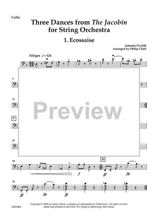 Digital Sheet Music for Three Dances from The Jacobin - Cello by Antonín Dvorák, Philip Clark scored for String Orchestra; id:458421