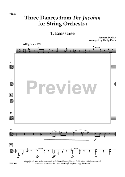 Digital Sheet Music for Three Dances from The Jacobin - Viola by Antonín Dvorák, Philip Clark scored for String Orchestra; id:458420