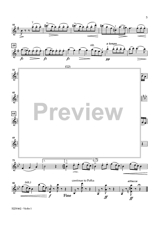 Digital Sheet Music for Three Dances from The Jacobin - Violin 1 by Antonín Dvorák, Philip Clark scored for String Orchestra; id:458418