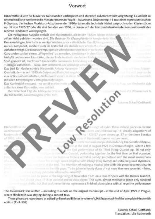 Digital Sheet Music for Three Early Pieces by Paul Hindemith scored for Piano; id:489602
