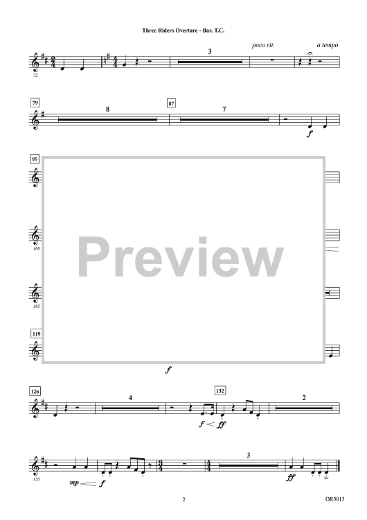 Digital Sheet Music for Three Riders Overture - Baritone TC by Carrie Lane Gruselle scored for Orchestra; id:506661