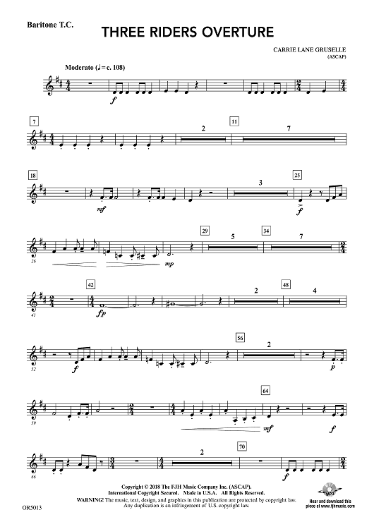 "Three Riders Overture - Baritone TC" Sheet Music by Carrie Lane Gruselle