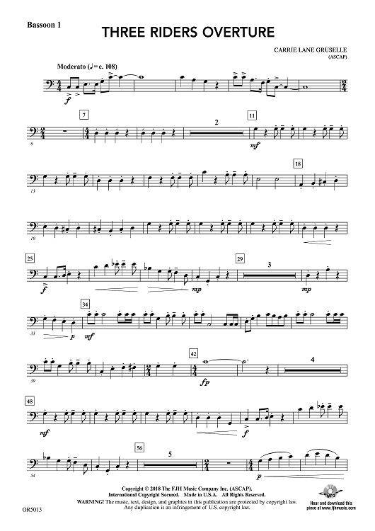 "Three Riders Overture - Bassoon 1" Sheet Music by Carrie Lane Gruselle