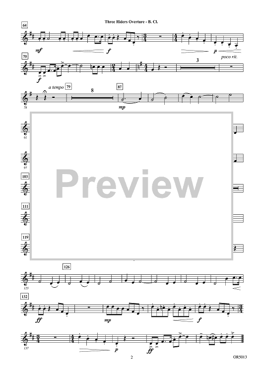 Digital Sheet Music for Three Riders Overture - Bb Bass Clarinet by Carrie Lane Gruselle scored for Orchestra; id:506655