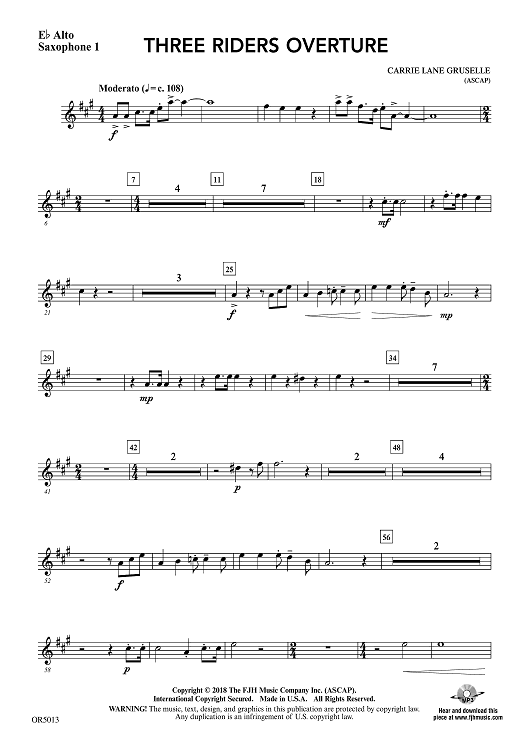 "Three Riders Overture - Eb Alto Saxophone 1" Sheet Music by Carrie Lane Gruselle