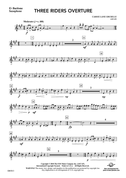 "Three Riders Overture - Eb Baritone Saxophone" Sheet Music by Carrie Lane Gruselle