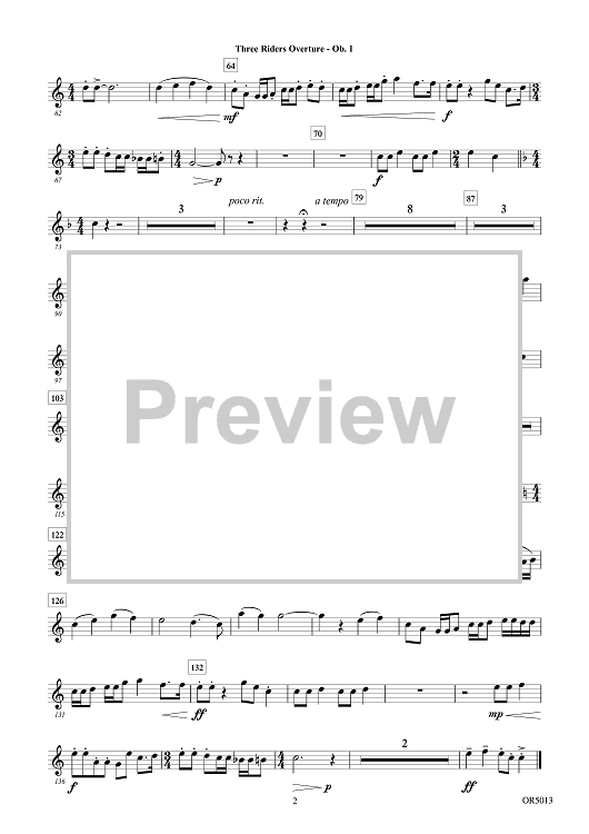 Digital Sheet Music for Three Riders Overture - Oboe 1 by Carrie Lane Gruselle scored for Orchestra; id:506629