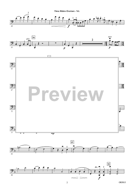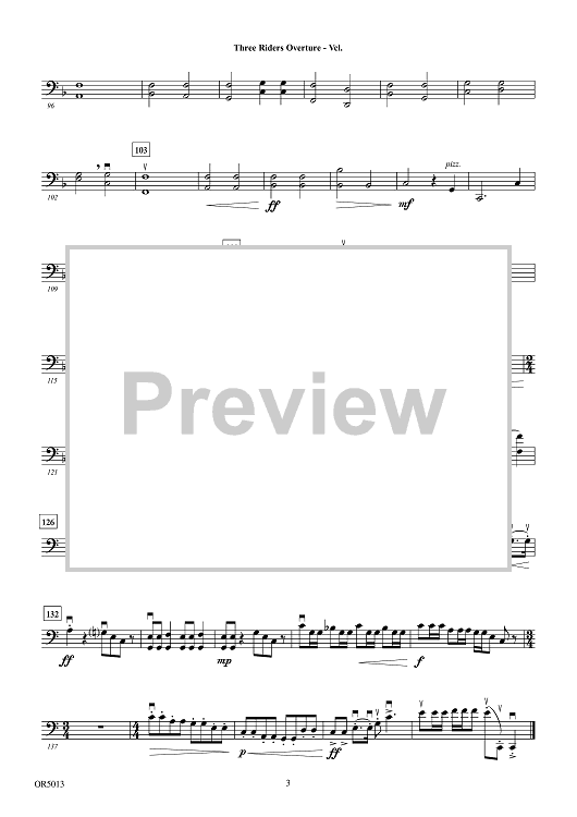 Digital Sheet Music for Three Riders Overture - Violoncello by Carrie Lane Gruselle scored for Orchestra; id:506653