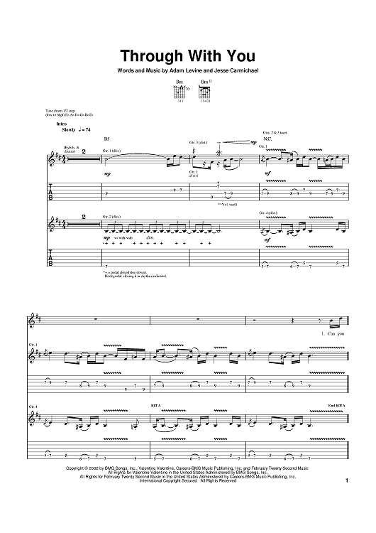 Digital Sheet Music for Through With You by Adam Levine, Jesse Carmichael, Maroon 5 scored for Guitar Tab; id:373494
