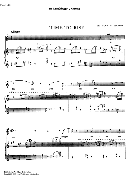Digital Sheet Music for Time To Rise by Malcolm Williamson scored for Soprano or Tenor/Piano; id:332954