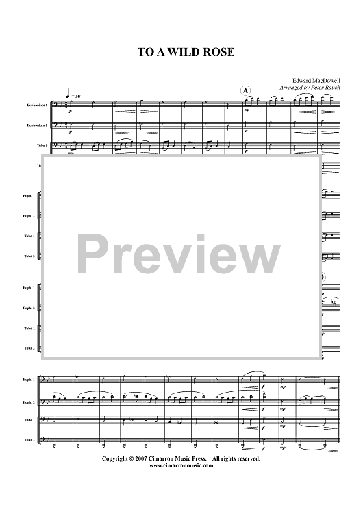 Digital Sheet Music for To A Wild Rose - Score by Peter Rauch, Edward MacDowell scored for Tuba Quartet; id:366464