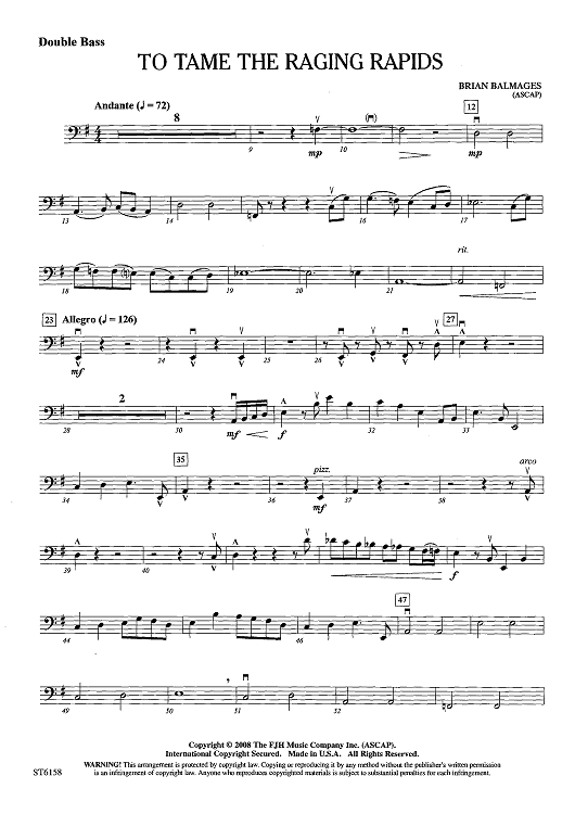 "To Tame The Raging Rapids - Double Bass" Sheet Music by Brian Balmages