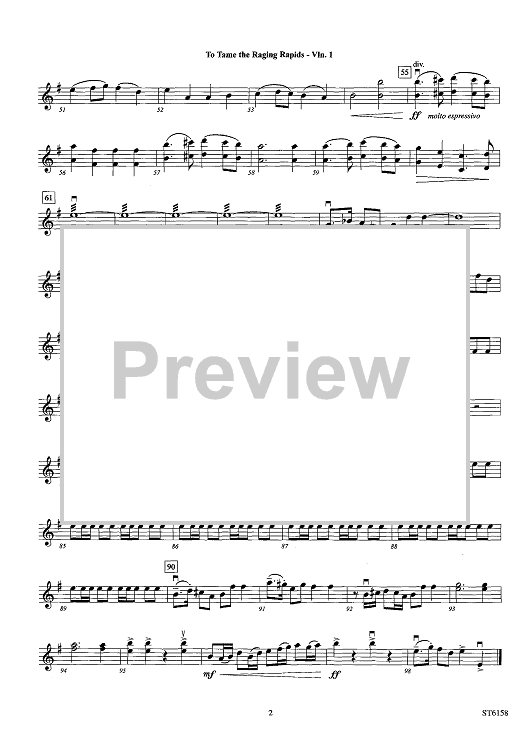 Digital Sheet Music for To Tame The Raging Rapids - Violin 1 by Brian Balmages scored for String Orchestra; id:441220