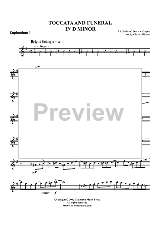 Digital Sheet Music for Toccata and Funeral in D Minor - Euphonium 1 BC/TC by Frederic Chopin, Charles Warren, Johann Sebastian Bach scored for Tuba Quartet; id:356308