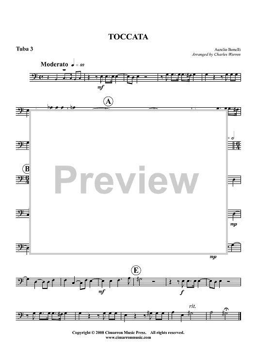 Digital Sheet Music for Toccata - Tuba 3 by Charles Warren, Aurelio Bonelli scored for Tuba Ensemble; id:424408