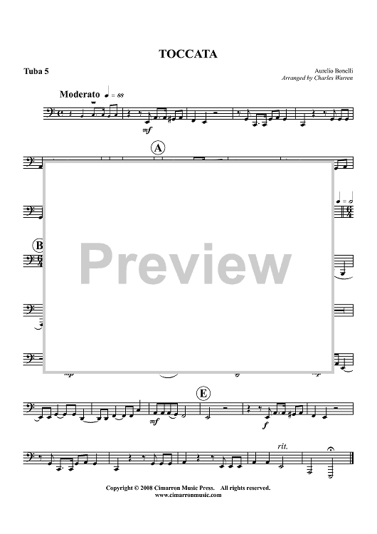Digital Sheet Music for Toccata - Tuba 5 by Charles Warren, Aurelio Bonelli scored for Tuba Ensemble; id:424411