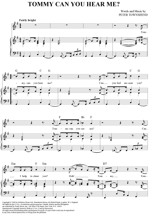 "Tommy Can You Hear Me?" Sheet Music by The Who