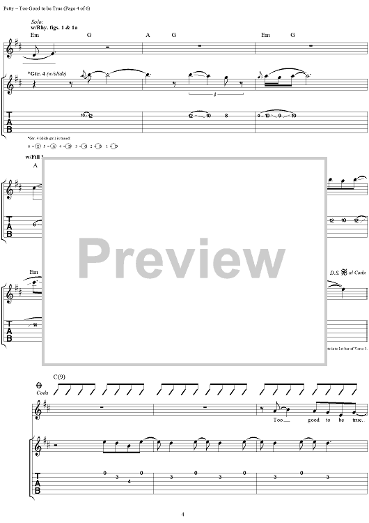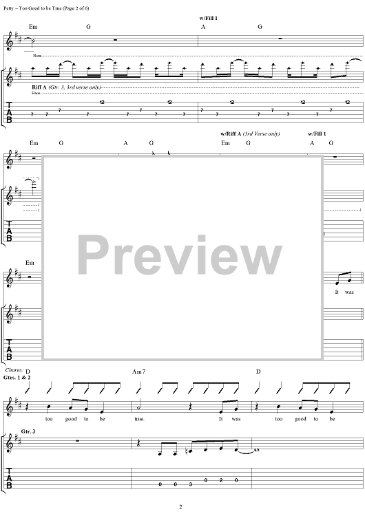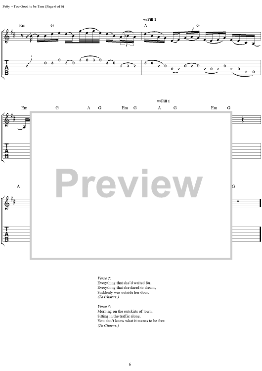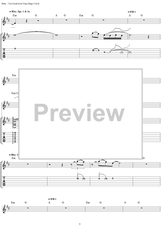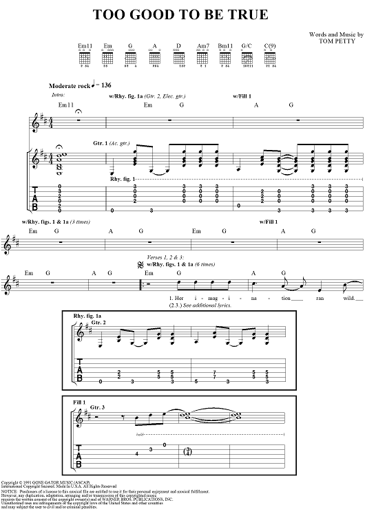 "Too Good To Be True" Sheet Music by Tom Petty and The Heartbreakers