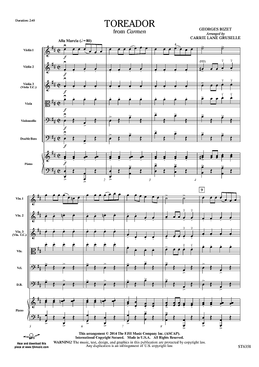 Digital Sheet Music for Toreador (from Carmen) - Score by Georges Bizet, Carrie Lane Gruselle scored for Orchestra; id:448283