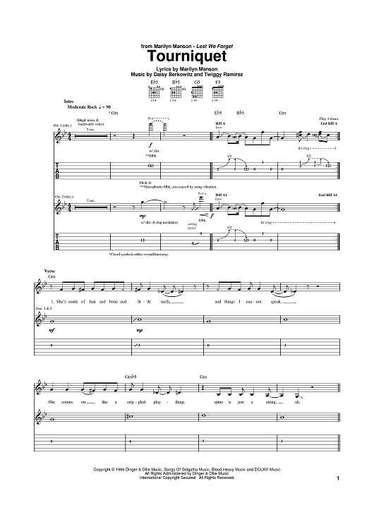 Digital Sheet Music for Tourniquet by Daisy Berkowitz, Marilyn Manson, Twiggy Ramirez scored for Guitar Tab; id:384628