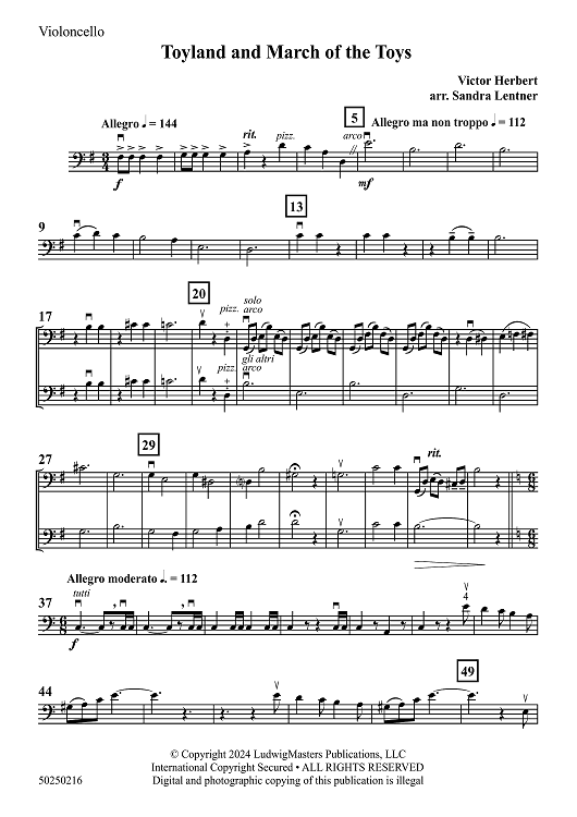 Digital Sheet Music for Toyland and March of the Toys - Violoncello by Victor Herbert, Sandra Lentner scored for Orchestra; id:503885