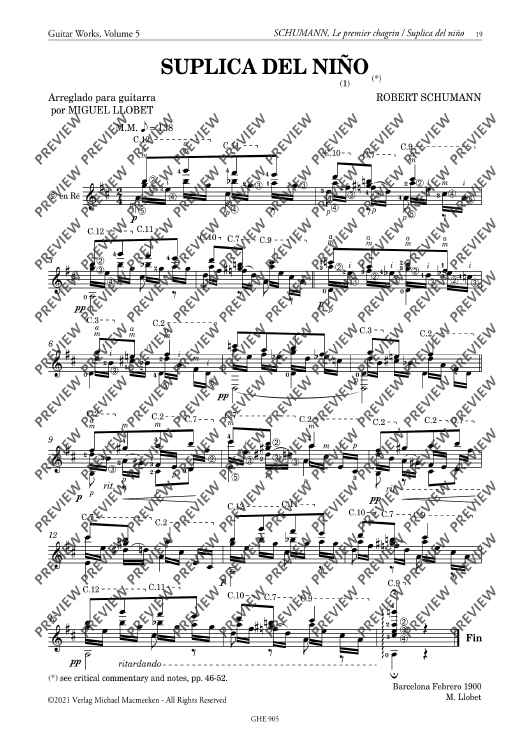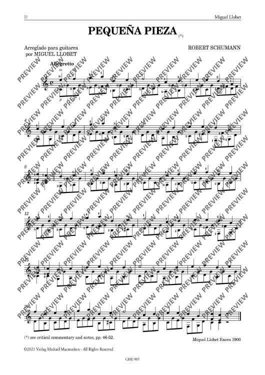 The piano played an important part in Llobet's life. He and his wife Anita Aguilar were accomplished pianists. This volume concentrates on the piano's Central European classical repertoire, which Llobet knew well. These arrangements are absolute gems, and this volume contains two unpublished works.