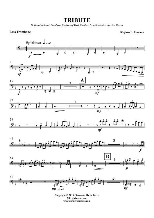 "Tribute - Bass Trombone" Sheet Music by Stephen D. Emmons