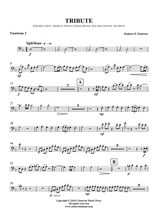 "Tribute - Trombone 2" Sheet Music by Stephen D. Emmons