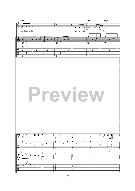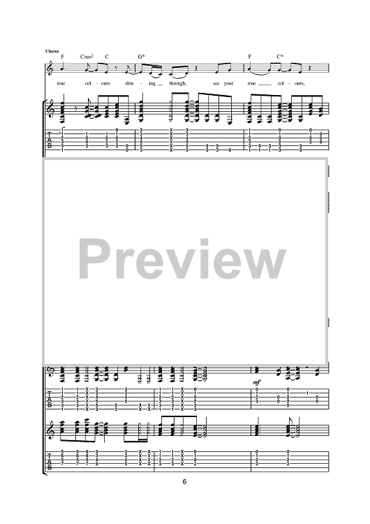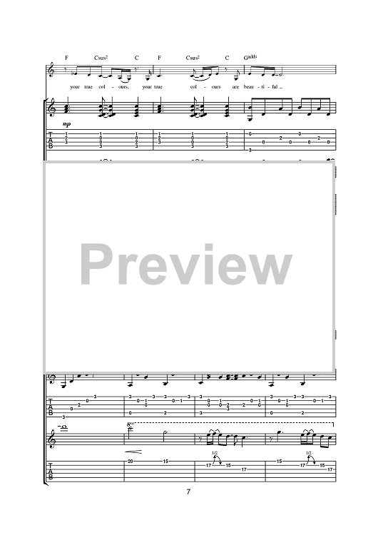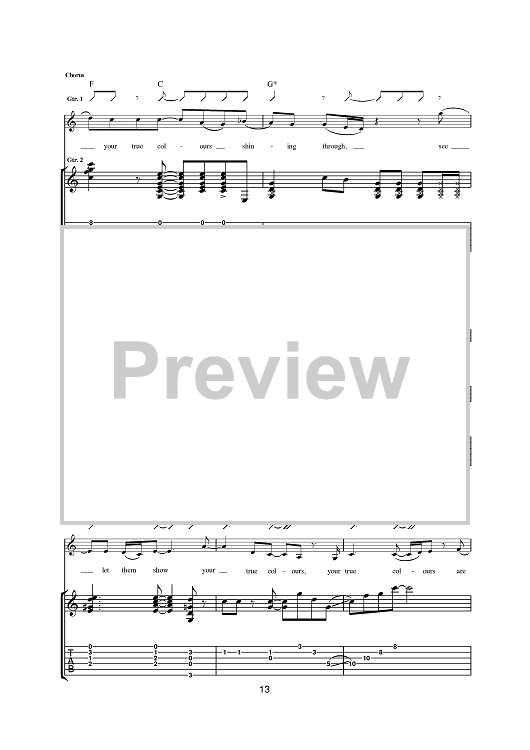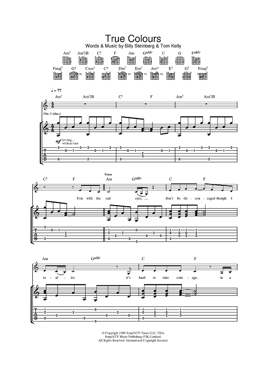 Digital Sheet Music for True Colours by Billy Steinberg, Tom Kelly, Eva Cassidy scored for Guitar Tab; id:379927