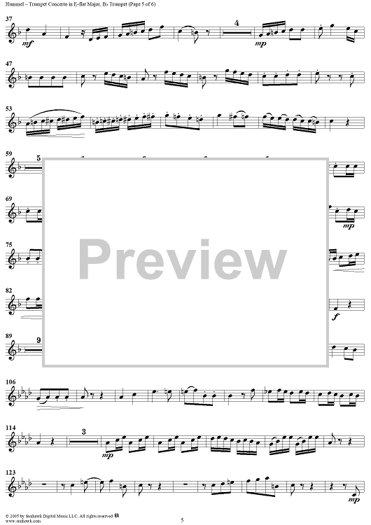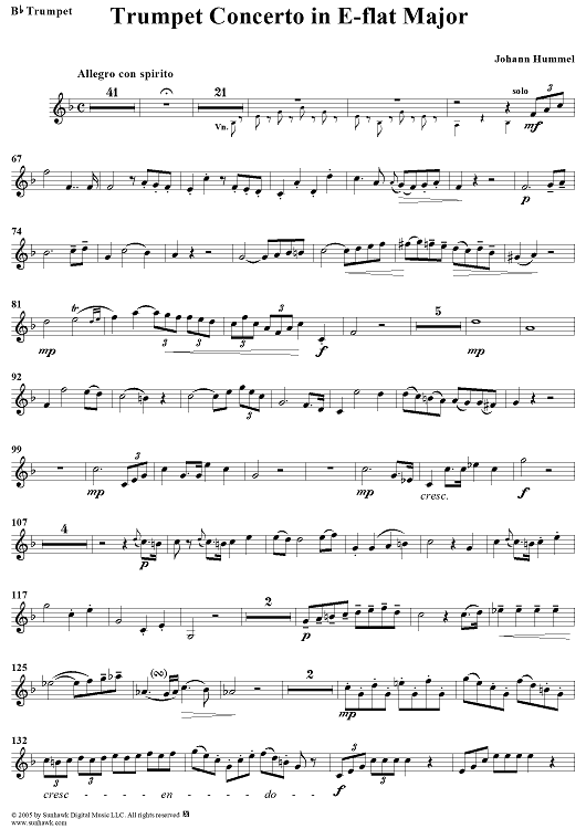 "Trumpet Concerto - Trumpet" Sheet Music by Johann Nepomuk Hummel