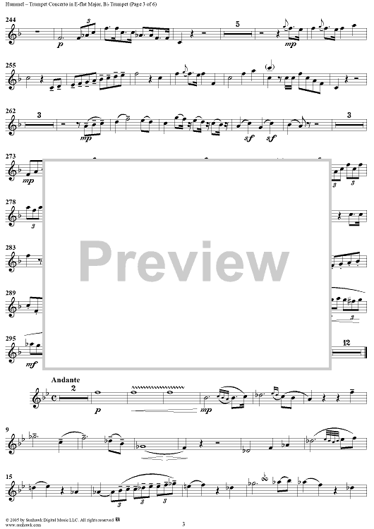 Digital Sheet Music for Trumpet Concerto - Trumpet by Johann Nepomuk Hummel scored for Trumpet/Piano; id:311962