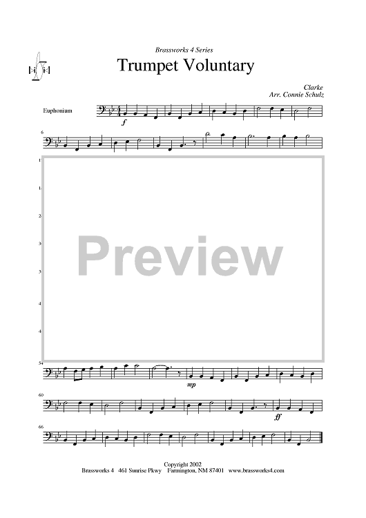 Digital Sheet Music for Trumpet Voluntary - Euphonium by Jeremiah Clarke, Connie Schulz scored for Brass Quartet; id:316778