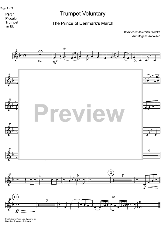 Digital Sheet Music for Trumpet Voluntary - Piccolo Trumpet in B-flat by Jeremiah Clarke, Mogens Andresen scored for Brass Ensemble; id:324935