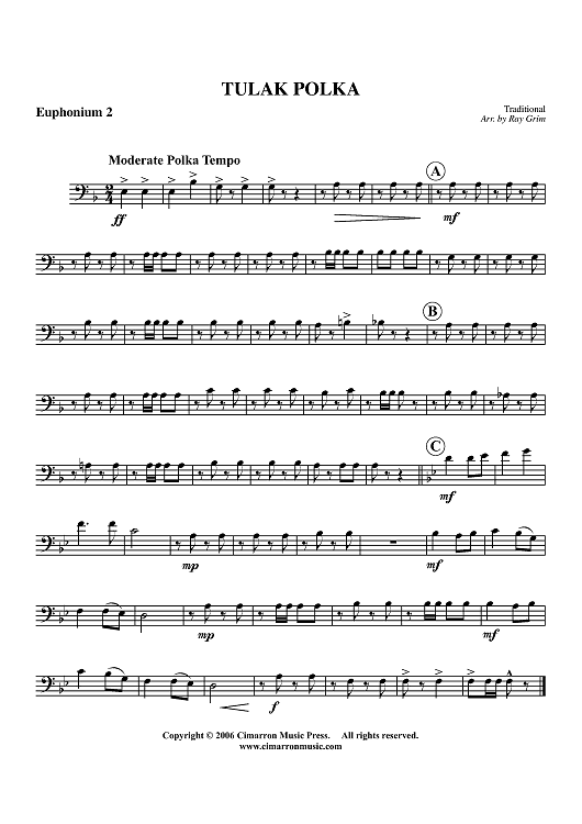 Digital Sheet Music for Tulak Polka - Euphonium 2 BC/TC by Ray Grim, Traditional scored for Tuba Quartet; id:357306