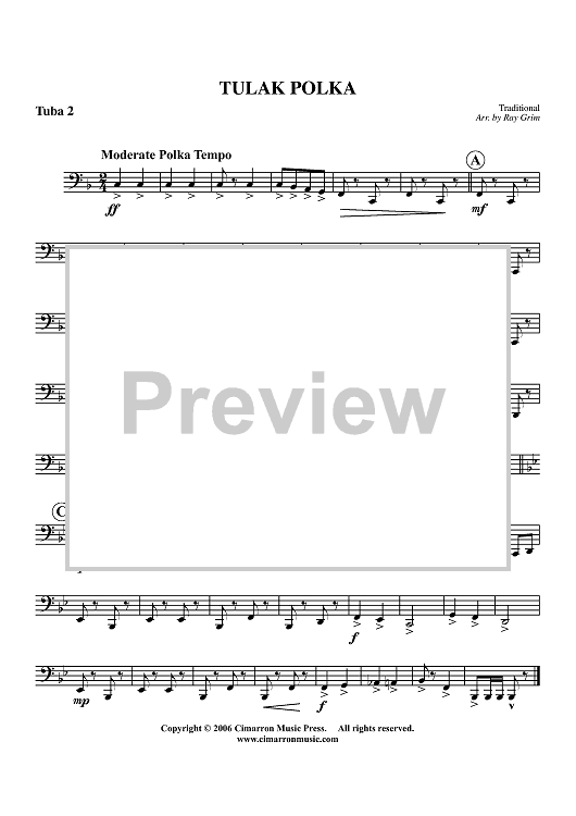 Digital Sheet Music for Tulak Polka - Tuba 2 by Ray Grim, Traditional scored for Tuba Quartet; id:357308