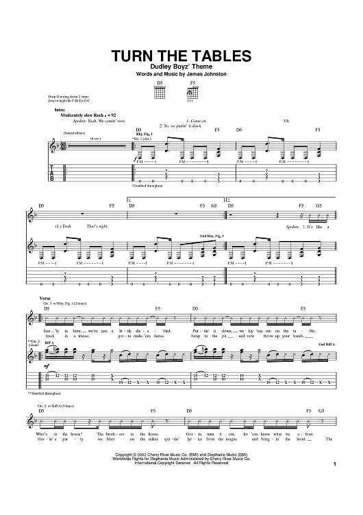 Digital Sheet Music for Turn The Tables by Saliva, James Johnston scored for Guitar Tab; id:371248