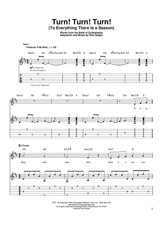 Digital Sheet Music for Turn! Turn! Turn! (To Everything There Is A Season) by The Byrds, Peter Seeger, Book of Ecclesiastes scored for Guitar Tab; id:374305