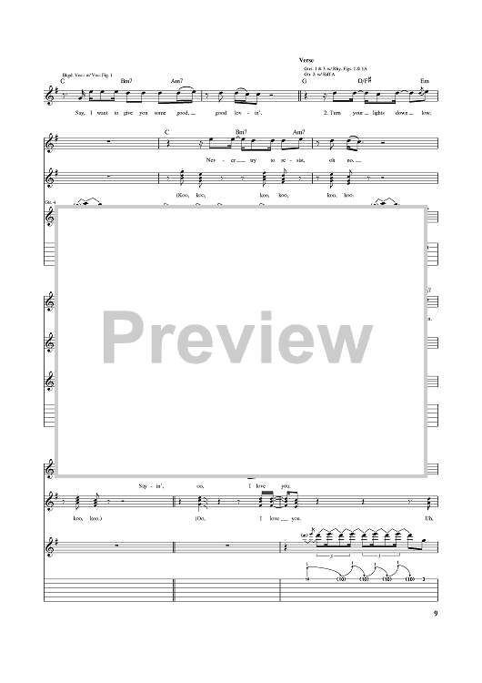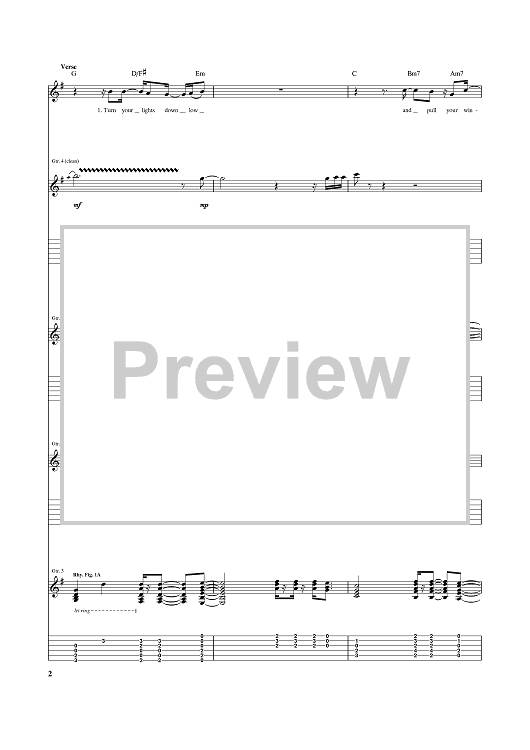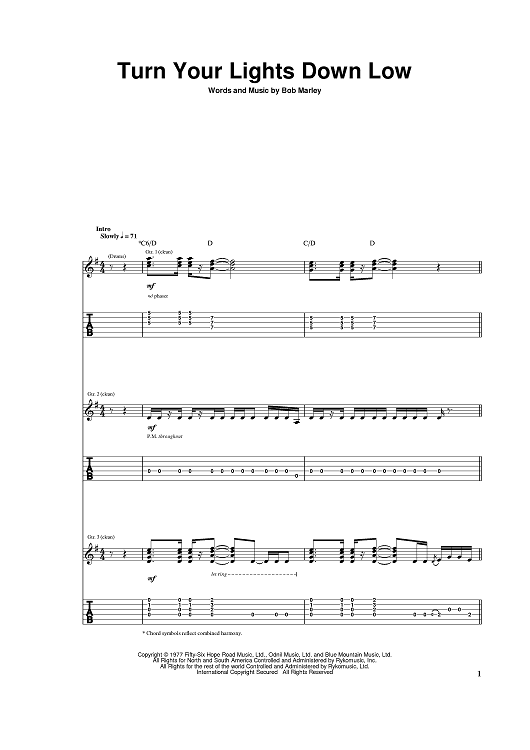 Digital Sheet Music for Turn Your Lights Down Low by Bob Marley scored for Guitar Tab; id:370187