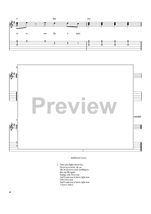 Digital Sheet Music for Turn Your Lights Down Low by Bob Marley scored for Easy Guitar Tab; id:371360
