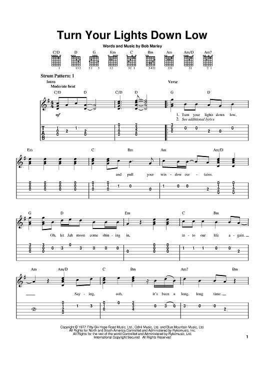 "Turn Your Lights Down Low" Sheet Music by Bob Marley