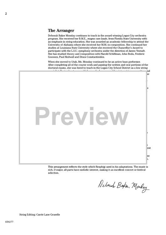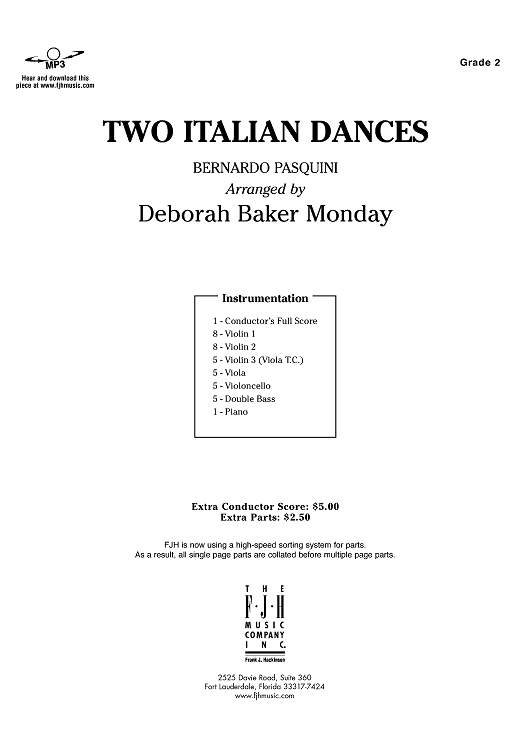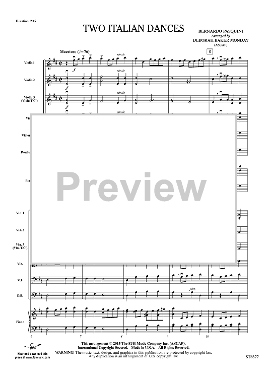 Digital Sheet Music for Two Italian Dances - Score by Bernardo Pasquini, Deborah Baker Monday scored for Orchestra; id:455594