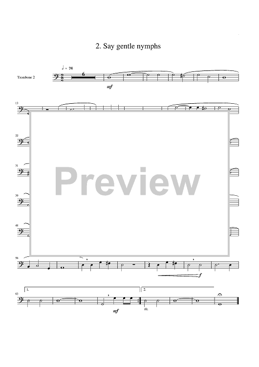 Digital Sheet Music for Two Madrigals, Vol. 11 - from Morley's "First Book of Madrigals to 4 Voices" (1594) - Trombone 2 by Thomas Morley, Roger McDuffie scored for Brass Quartet; id:429242
