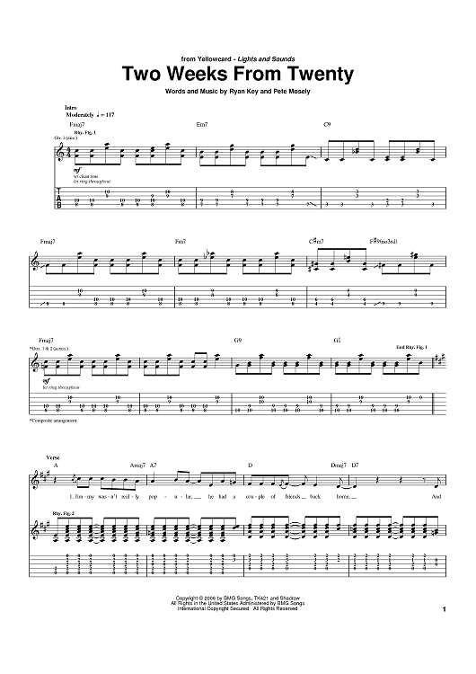 Digital Sheet Music for Two Weeks From Twenty by Ryan Key, Peter Mosely, Yellowcard scored for Guitar Tab; id:390977