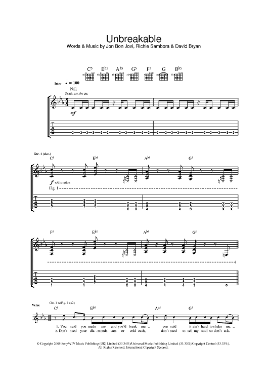 Digital Sheet Music for Unbreakable by Bon Jovi, Richie Sambora, Jon Bon Jovi, David Bryan scored for Guitar Tab; id:387480