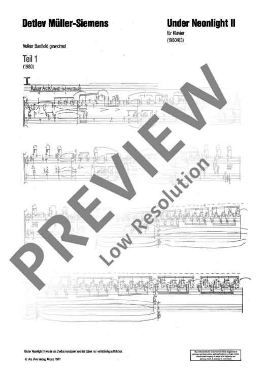 "Under Neonlight II" Sheet Music by Detlev Mueller-Siemens