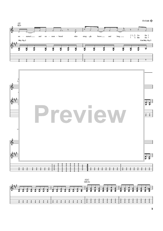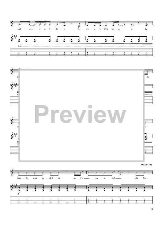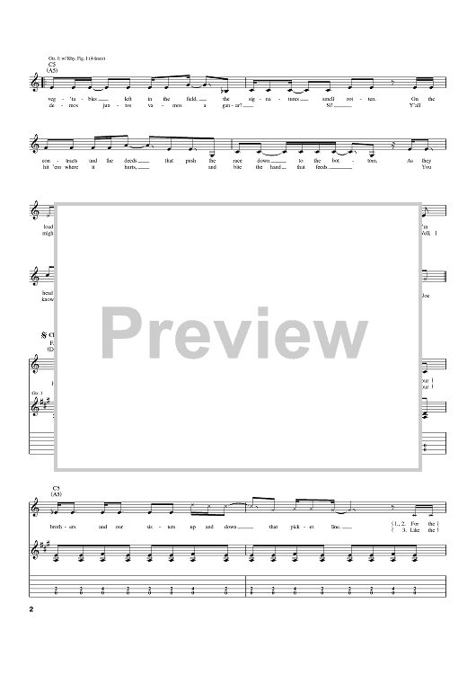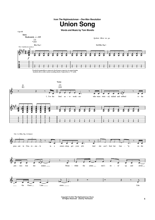Digital Sheet Music for Union Song by Tom Morello, The Nightwatchman scored for Guitar Tab; id:401115